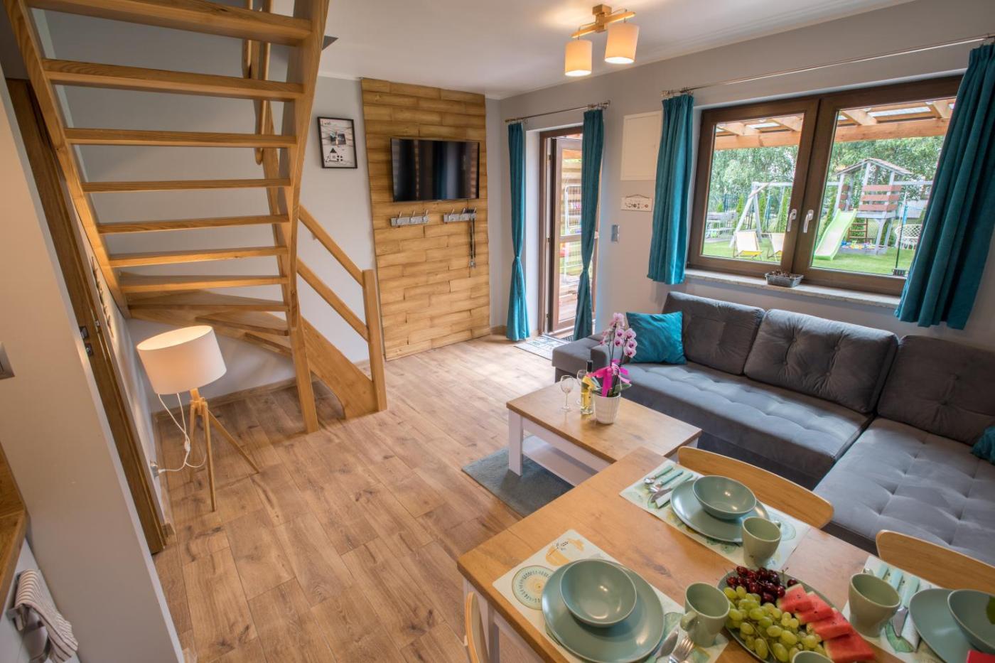 Domek z 2 sypialniami. Featuring a private entrance, this chalet is comprised of 1 living room, 2 separate bedrooms and 1 bathroom with a shower and a hairdryer. Guests will find a stovetop, a refrigerator, kitchenware and a microwave in the fully equipped kitchenette. The chalet also has a barbecue. Boasting a terrace with garden views, this chalet also offers soundproof walls and a flat-screen TV with cable channels. The unit offers 5 beds. Domek - 7 osobowy. Powierzchnia pokoju ok.: 64 mkw. ;