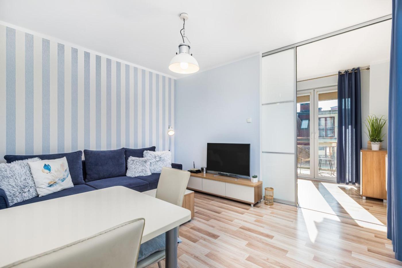 Studio z balkonem. Providing free toiletries, this studio includes a private bathroom with a shower and a hairdryer. In the fully equipped kitchenette, guests will find a stovetop, a refrigerator, kitchenware and a microwave. Featuring a balcony, this studio also provides a washing machine, a tea and coffee maker and a flat-screen TV with cable channels. The unit offers 1 bed. Studio - 3 osobowy. Powierzchnia pokoju ok.: 27 mkw.