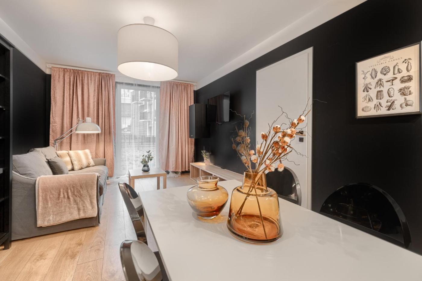 Apartament typu Deluxe. Boasting a private entrance, this apartment features 1 living room, 1 separate bedroom and 1 bathroom with a bath and a shower. Guests can make meals in the kitchen that features a stovetop, a refrigerator, a dishwasher and kitchenware. This apartment has a washing machine, flat-screen TV, garden views, as well as chocolate for guests. The unit has 4 beds. Apartament - 5 osobowy. Powierzchnia pokoju ok.: 48 mkw.